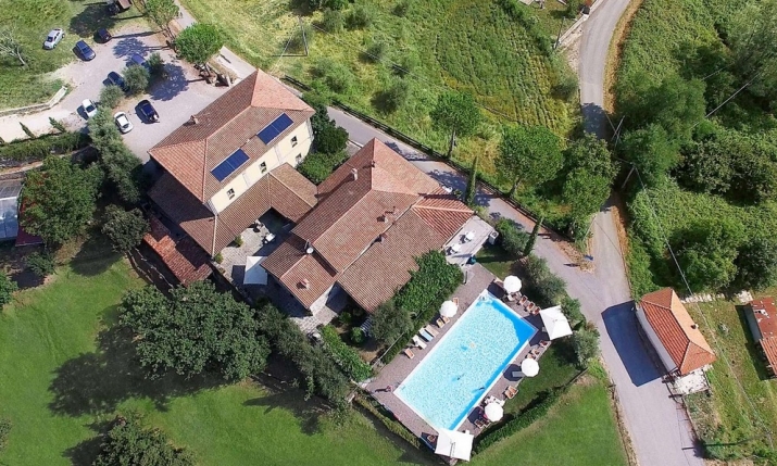 L’ampio corpo centrale, accogliente ed improntato allo stile rustico tipico del luogo, comprende gli spazi comuni di ritrovo e di relax come la sala di lettura ed una piacevole terrazza naturale a pergolato, che si affaccia sulla incantevole piscina sottostante. Sempre nel corpo centrale sono disponibili per gli ospiti la sala ristorante ed il bar. Subito di fianco, collegato da uno spazioso e suggestivo porticato in pietra, si accede al grande edificio degli alloggi nel quale sono disposte dieci ampie camere tutte dotate di bagno privato. L’attività agricola della fattoria fornisce tutti i prodotti genuini che ogni giorno la cucina propone agli ospiti con menù antichi e raffinati.