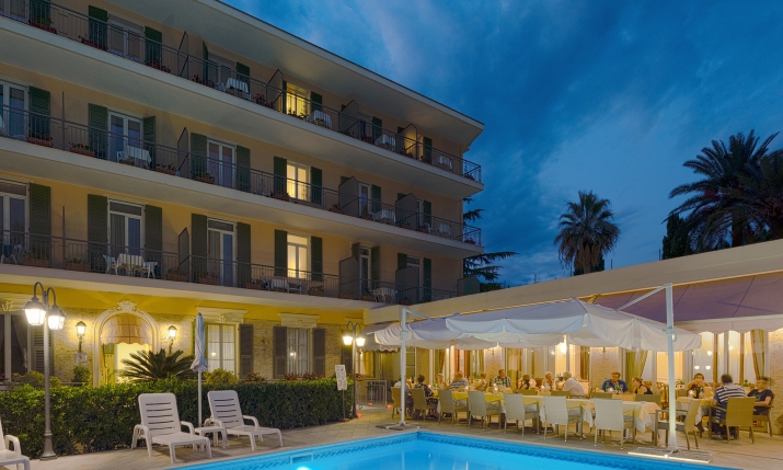 una fantastica piscina esterna con acqua riscaldata, ad uso gratuito per gli ospiti dell’hotel, terrazza solarium e nella stagione estiva, spiaggia privata, convenzionata, con cabina, ombrellone e sdraio.