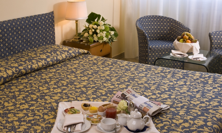 Ampie e silenziose, tutte le camere sono dotate di Frigobar, TV a schermo LCD con ricezione via satellite e canali digitali (Sky e Pay Tv), radio, aria condizionata, wi fi, telefono con collegamento a internet, sveglia, cassetta di sicurezza. La stanza da bagno prevede asciugacapelli e pesa persone. Molte camere hanno anche balcone, vista mare e vasca idromassaggio. Servizi per disabili. Room service.