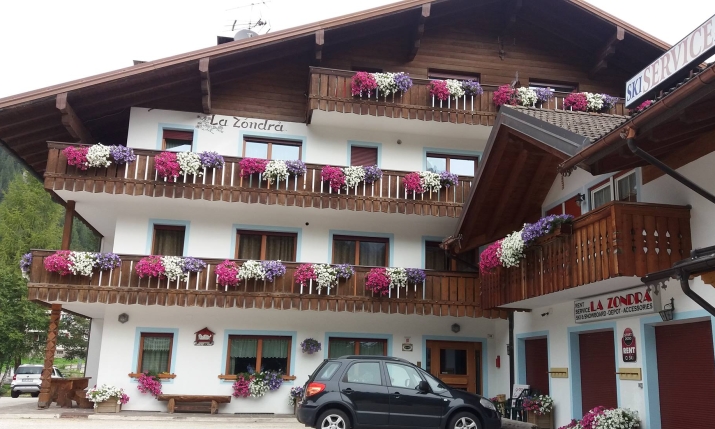 Garnì a conduzione famigliare, situato a 500 m. dal centro di Canazei a pochi metri dalla funivia del Belvedere, sulla strada centrale del paese di fronte all’entrata del campeggio, a 100 m. dalla fermata dell’autobus di linea e skibus.