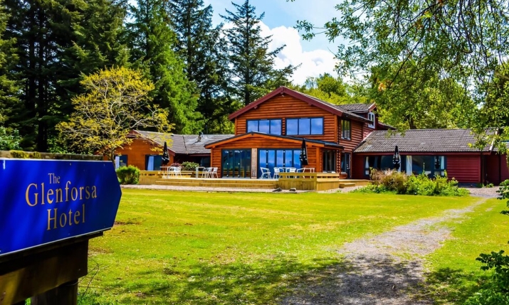 The Glenforsa Hotel captures the spirit of Mull and is a perfect rural holiday retreat, the mountain and sea blend together to give a fantastic panoramic view of the Sound of Mull. From the vantage point of the elevated observation lounge, you will frequently spot Sea Eagles, Seals and Otters along the shoreline.The Glenforsa Hotel, is a 15-room Norwegian wooden log hotel, imported from Norway and built in 1968, and has been owned and run by Allison and Brendan Walsh since 2004.Glenforsa, (Norse for Glen of the Swiftly-flowing river) is ideally situated on the sheltered East coast of Mull at the narrow waist of the Island, making it a great base to explore, visit Tobermory to the north, the sacred Island of Iona to the south, the Treshnish Isles and the remarkable little Island of Staffa and its famous Fingal’s Cave, the inspiration for composer Mendelssohn’s, Hebridean Overture.Mull is the third-largest island off the British Isles, with a land area of 353 square miles, but with a tiny population of fewer than 3,000. (Compare this with Jersey – 45 square miles and 90,000 residents!). Outdoor pursuits include angling, bird watching and hill walking, Ben More at 3,169ft, our only Munro, is a mere twelve miles away. Glenforsa Airfield is Mull’s only airfield and sits between the Hotel and theSound of Mull. Suitable for light aircraft only, it is superbly maintainedgrass strip over 730 meters in length. Patrons who bring their ownaircraft have ample safe parking facilities adjacent to the Hotel.Oban’s Airport Connel is only ten minutes flying time awayand has aviation fuel; Glenforsa’s runway is east/west –Connel’s north/south. Craignure, Mull’s main ferry-terminal with Oban, isten miles to the southeast, the service;Caledonian MacBrayne operates a forty-fiveminute sailing from Oban.