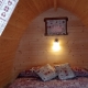 Allestiti all’interno con: letto matrimoniale(160x190) o su richiesta 2 singoli, cuscini, luce, prese di corrente, riscaldamento elettrico, bollitore con thè e caffè per il benvenuto e i momenti di relax.