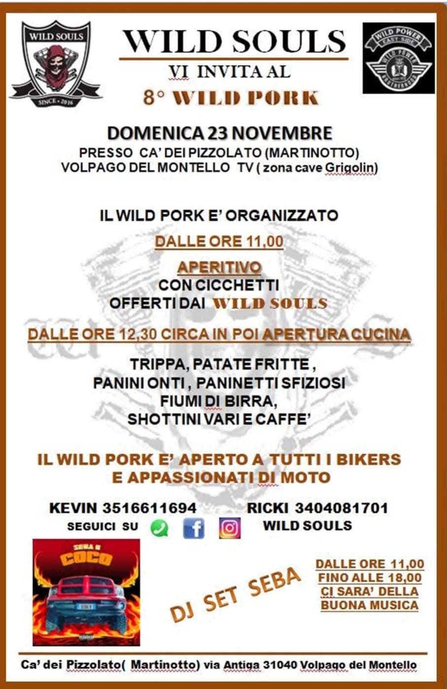 IL WILD PORK E' ORGANIZZATO DALLE ORE 11,00 APERITIVO CON CICCHETTI OFFERTIDAI WILD SOULS DALLE ORE 12,30 CIRCA IN POI APERTURA CUCINA - TRIPPA, PATATE FRITTE, PANINI ONTI, PANINETTI SFIZIOSI FIUMI DI BIRRA, SHOTTINI VARI E CAFFE' IL WILD PORK E' APERTO A TUTTI I BIKERS E APPASSIONATI DI MOTO ...continua